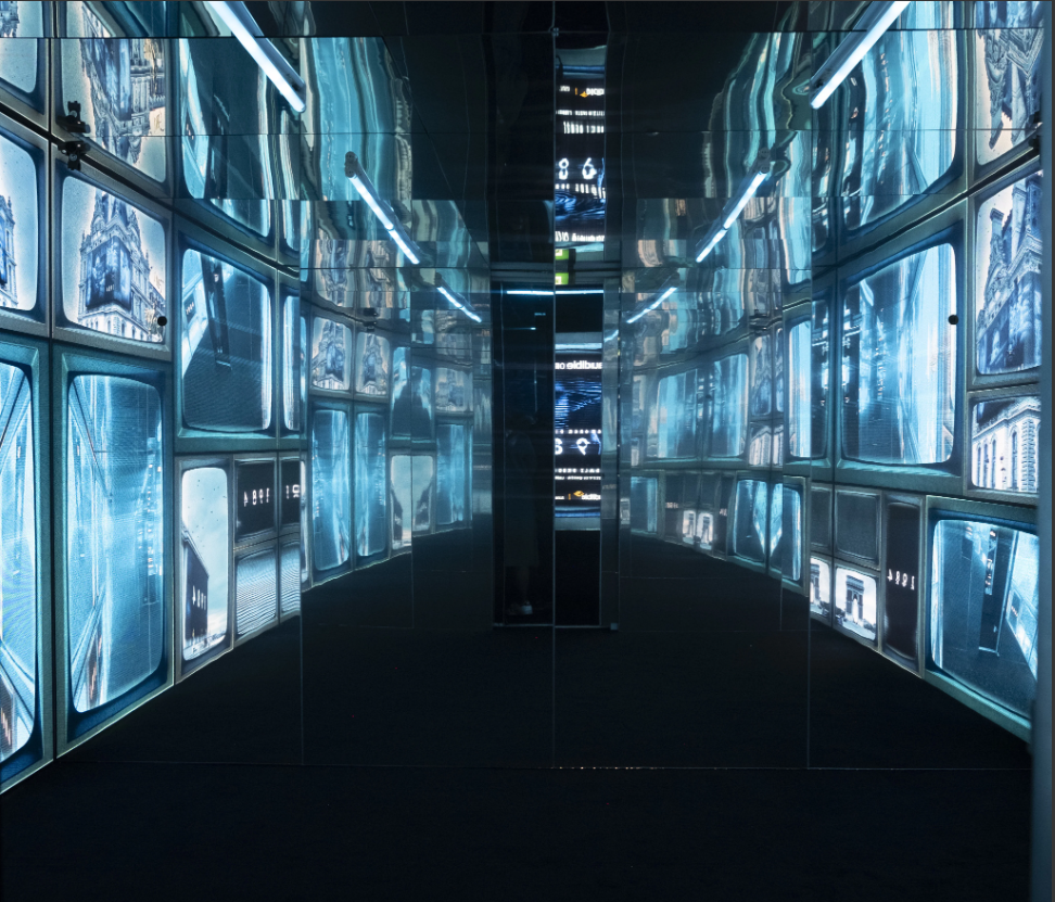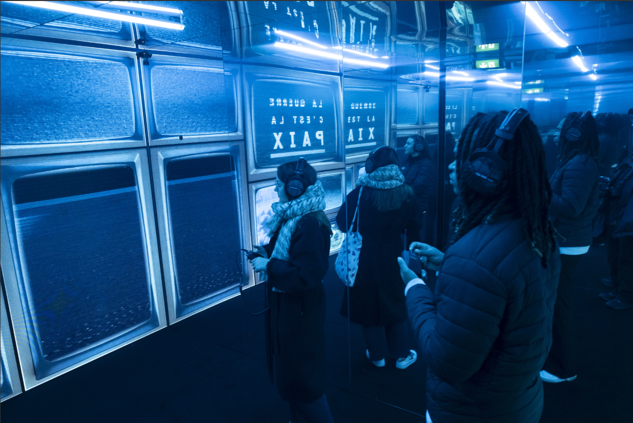 Inside a 20-square-meter cube, visitors were transported into Orwell’s dystopian world through a 5-minute interactive journey combining sound, light, and visuals — blurring the line between fiction and reality.