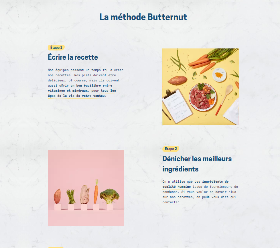 In July 2023, Butternut Box and I embarked on a journey to launch their beloved brand in Wallonia, Belgium, and our collaboration has continued since. Together with another French editor, I handle the editing, translation, and proofreading of French copy for their entire marketing funnel, both online and offline.